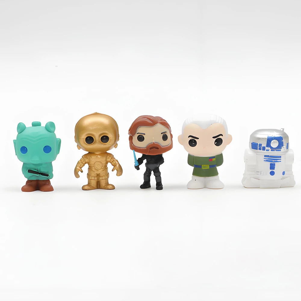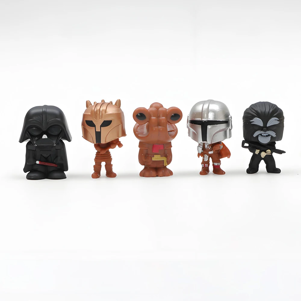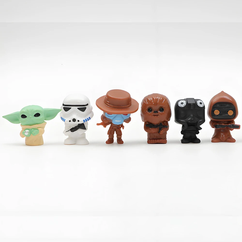 De Grogu a Mando, cada figura tem entre 3 a 5cm, com pintura vibrante e traços que misturam fofura com respeito à saga.